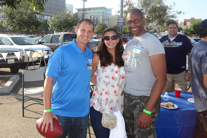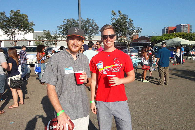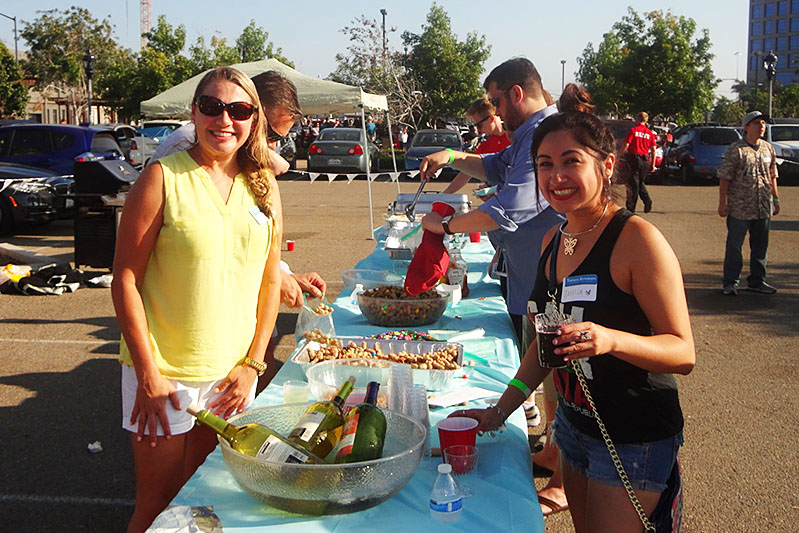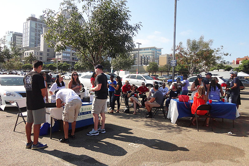 Good food, good friends and great conversations were all part of the Annual Alumni & Friends Tailgate party which took place on Saturday, August 22, 2015. More than 150 Thomas Jefferson faculty, staff, students and alums mixed and mingled before heading off to see the Padres play the Cardinals. On the day of the tailgate party Thomas Jefferson Padres Committee Chair, Sabrina Green ‘02, along with Alumni helpers, once again brought everything together, including drinks, food and bags of peanuts and M&M’s for tailgaters to take to the game. Alumni Board member Michael Weiner ’09, once again, fired up the grill. "Hats off to Sabrina Green '02, Michael Weiner '09, and Alumni Relations Director Stephanie Marquez for hitting a home run with the Annual Alumni & Friends Tailgate at Petco Park," said Jeremy Evens ’11, Alumni Association President.