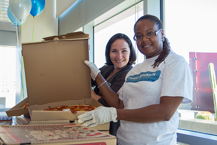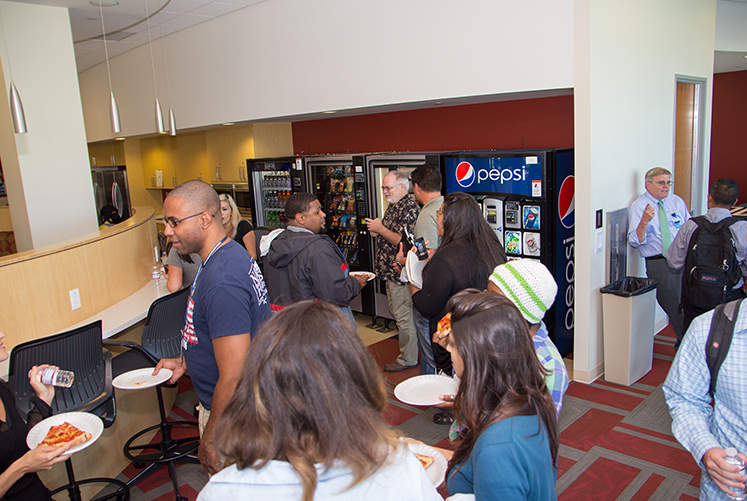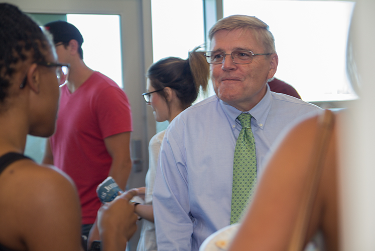 On Tuesday, August 18, 2015, Dean Thomas Guernsey hosted a Welcome Back for Continuing Students. Second and third year students were invited to partake of pizza, Thomas Jefferson t-shirts, and the company of faculty and staff.