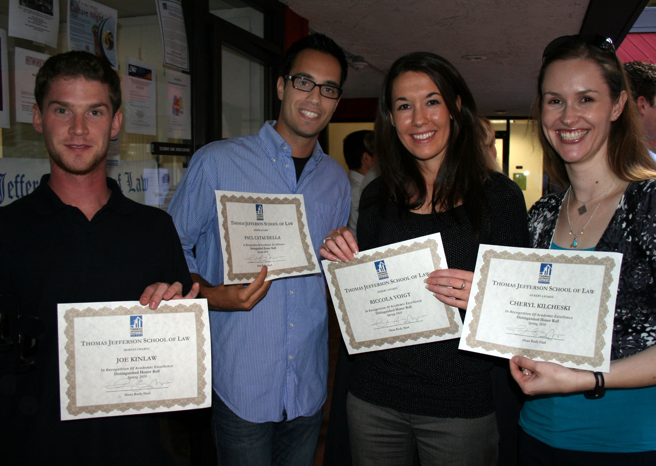 Dean Rudy Hasl presented each with a certificate, saying “special thanks to those of you who have achieved (this distinction.) We appreciate the effort you put into it and we really want to work with you to achieve what you want to in law school and your career.”