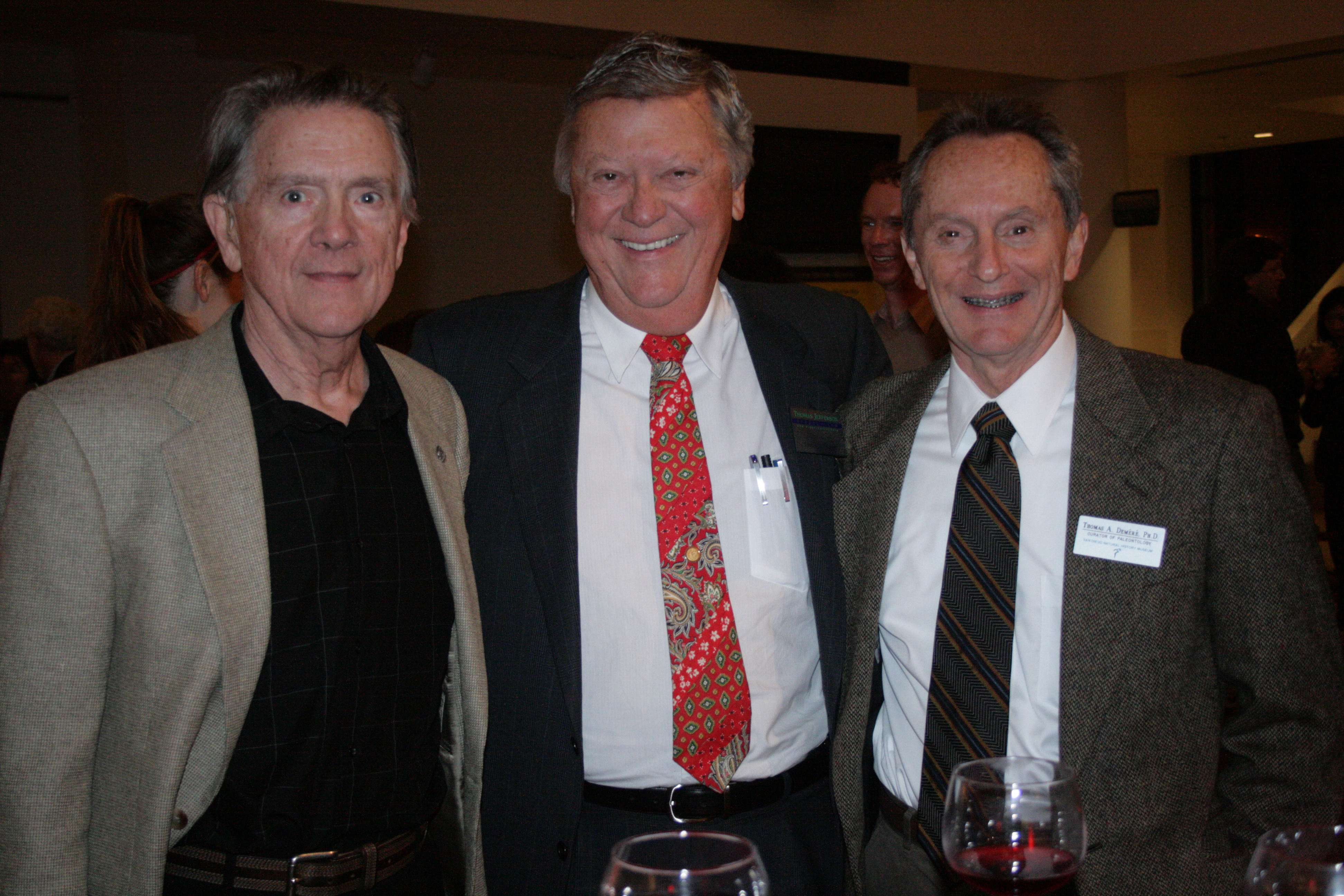 After the screening and presentation, everyone enjoyed a festive holiday party, with the mammoth’s bones and huge teeth on display. And then of course, the special guest of honor, Thomas Jefferson.