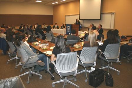 The first conference held at the new TJSL campus was a lively and stimulating discussion, moderated by Professor Leah Christensen. In addition to Judge Trentacosta, Appeals Court Associate Justice Gilbert Nares joined the panel, along with criminal appellate attorney Charles Sevilla and TJSL Professor Claire Wright.