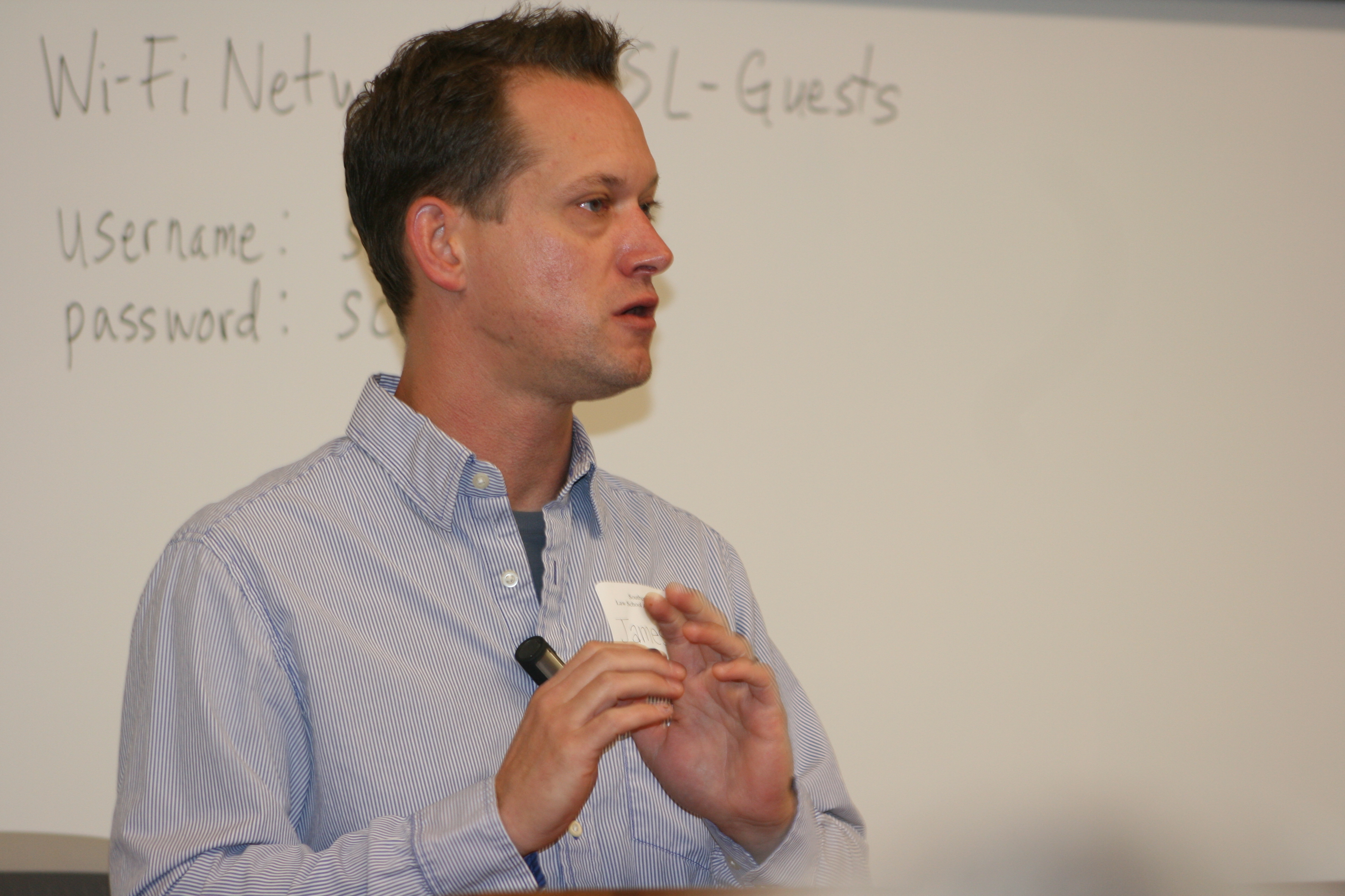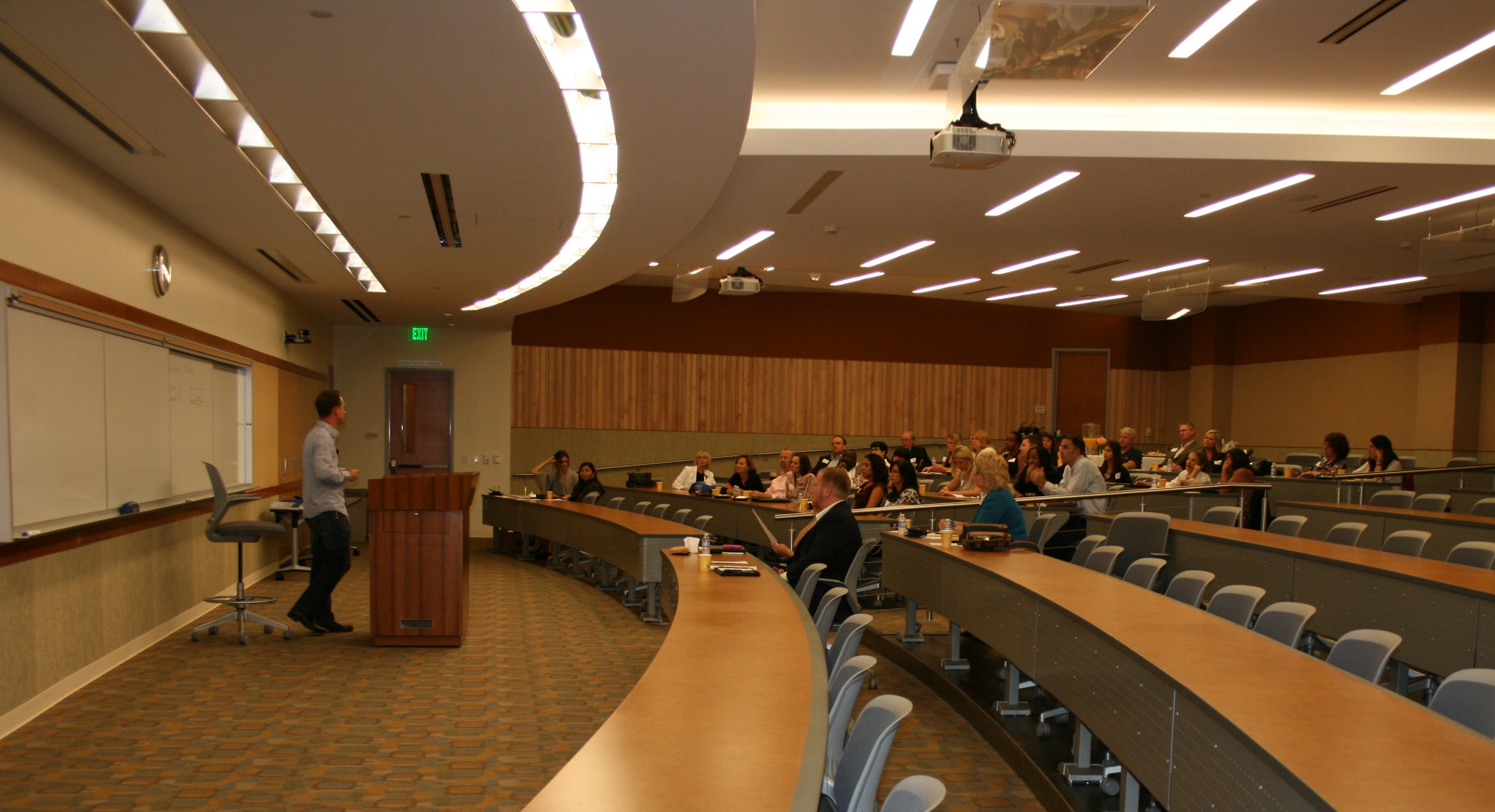 The attendees said they were very impressed with TJSL’s new campus and the opening presentation was from Thomas Jefferson’s Chief Information Officer James Cooper -- called “The Why Behind the Wow: Thinking Behind the 21st Century’s Newest Law School Building.” Cooper spoke about what “high tech” means to TJSL and the positive impact the law school is hoping to have on teaching and learning. He also spoke on TJSL’s commitment to being environmentally sensitive and how technology can play in to that -- using examples ranging from the rooftop solar array to the energy efficiency of the data center and computer systems.