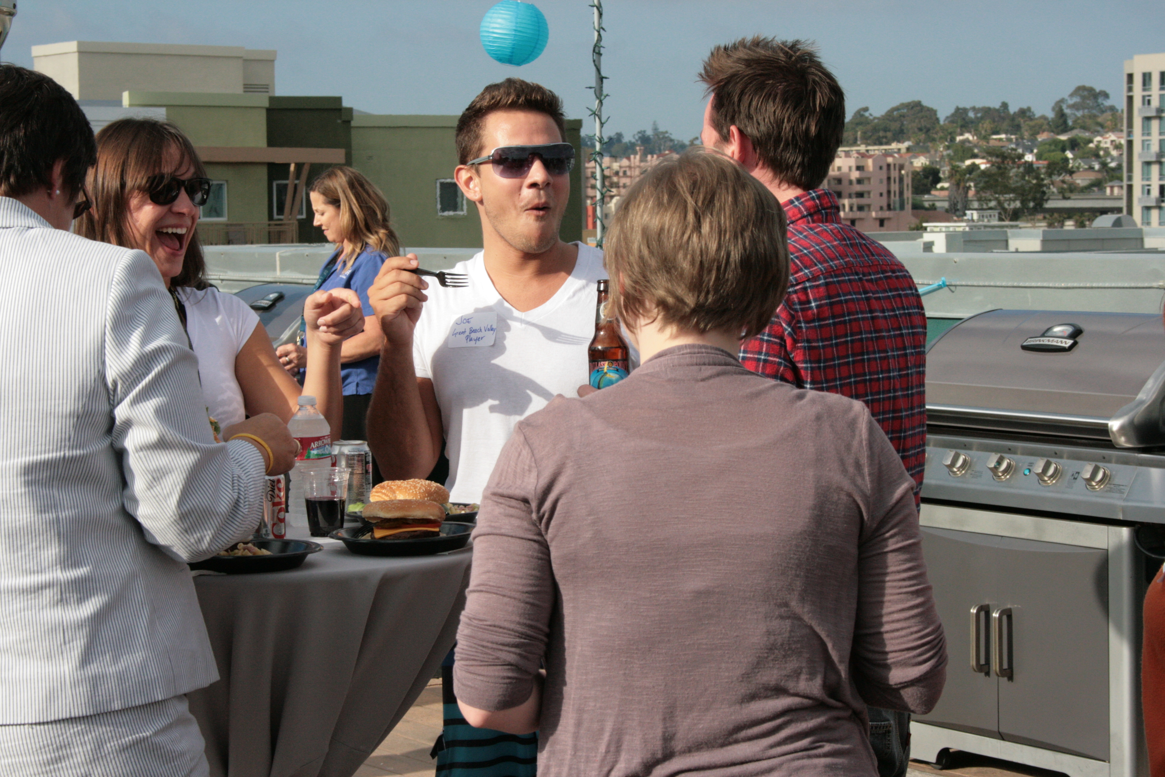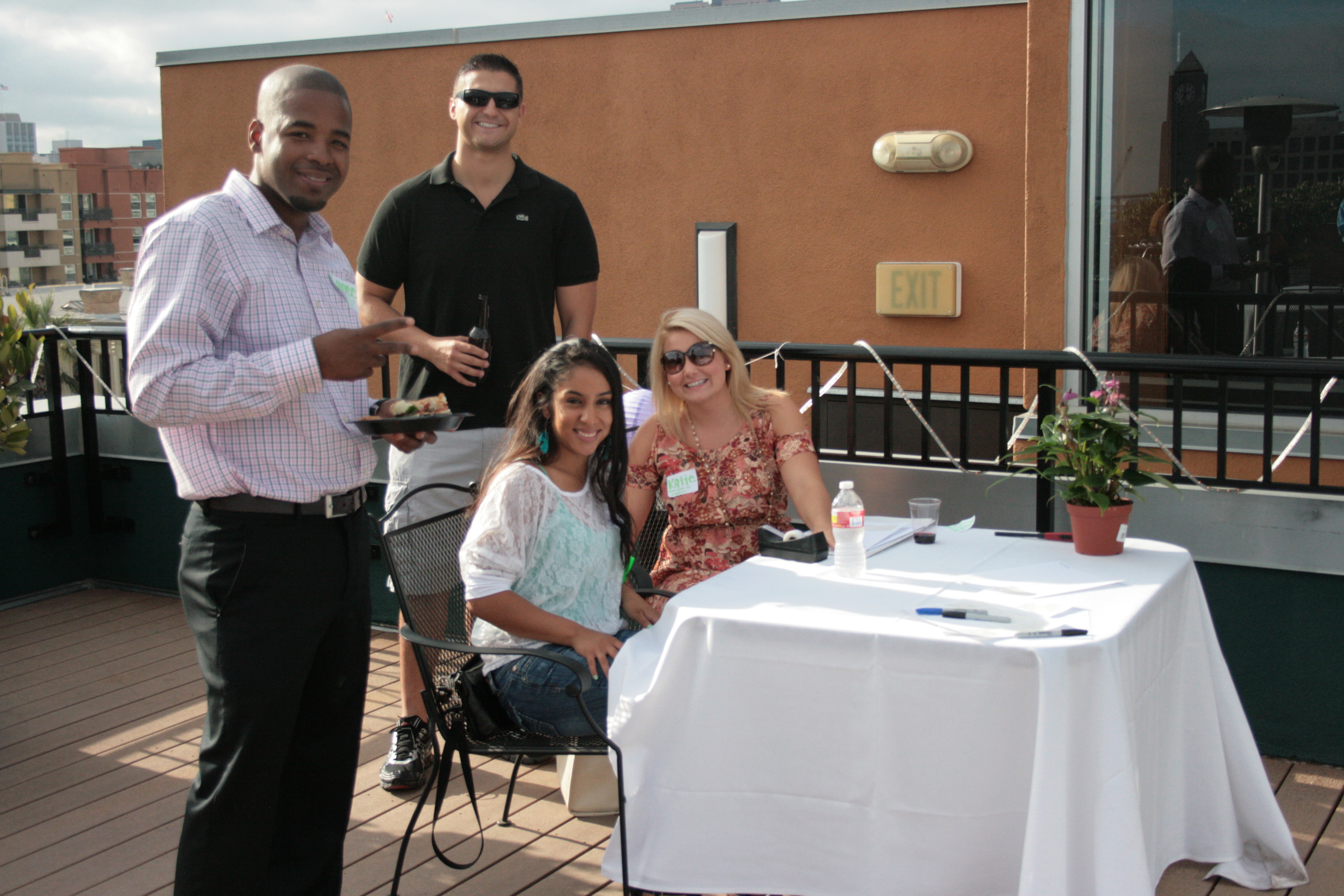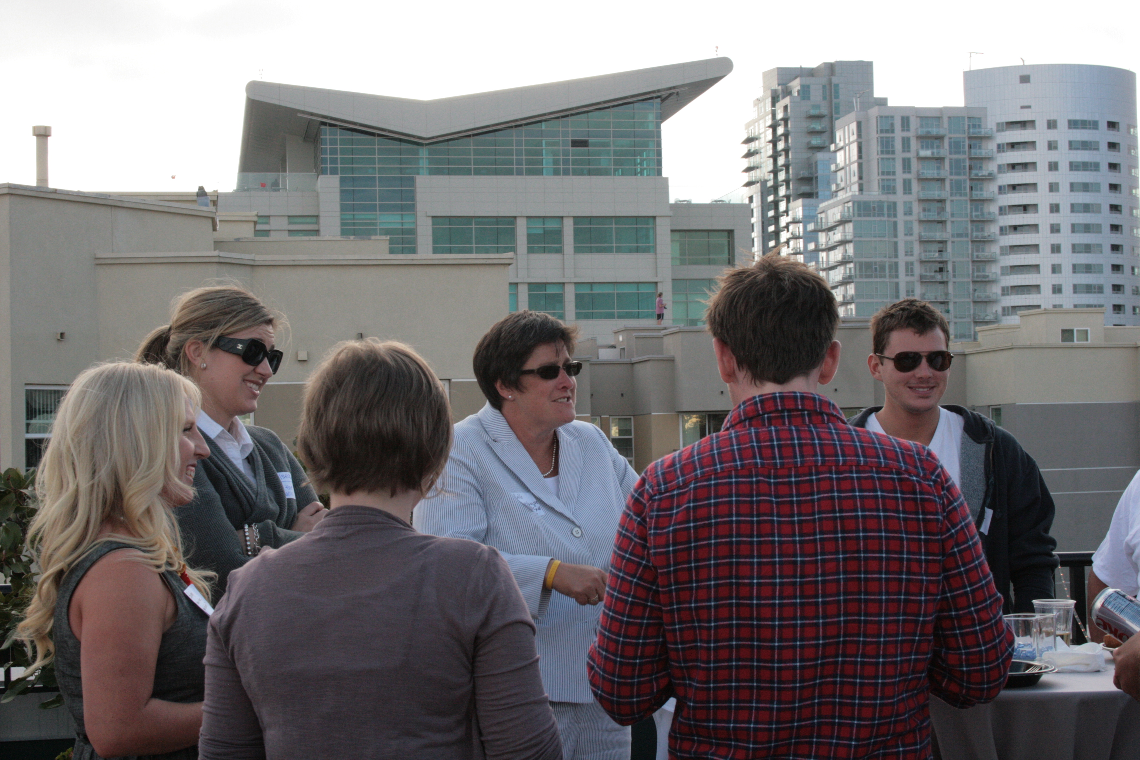 Beth Kransberger (L) and Dean Hasl (2nd from L) with Entrada Students