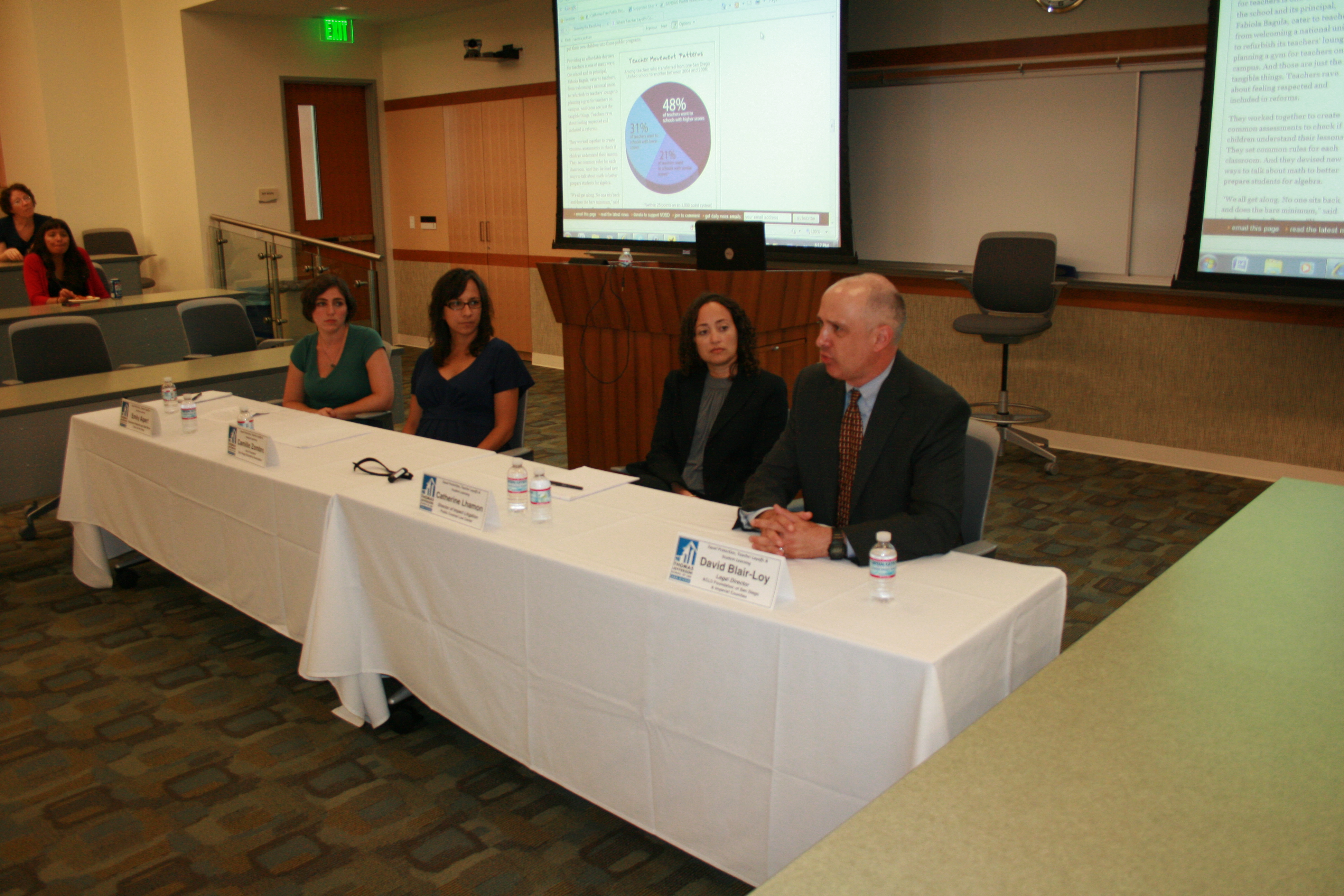 The panel featured speakers Emily Alpert, education reporter for voiceofsandiego.org; Camille Zombro, vice president of the local teachers union; and Catherine Lhamon, Director of Impact Litigation at Public Counsel Law Center. Many teachers and San Diego residents attended the event to learn more about the issues that face the community.
