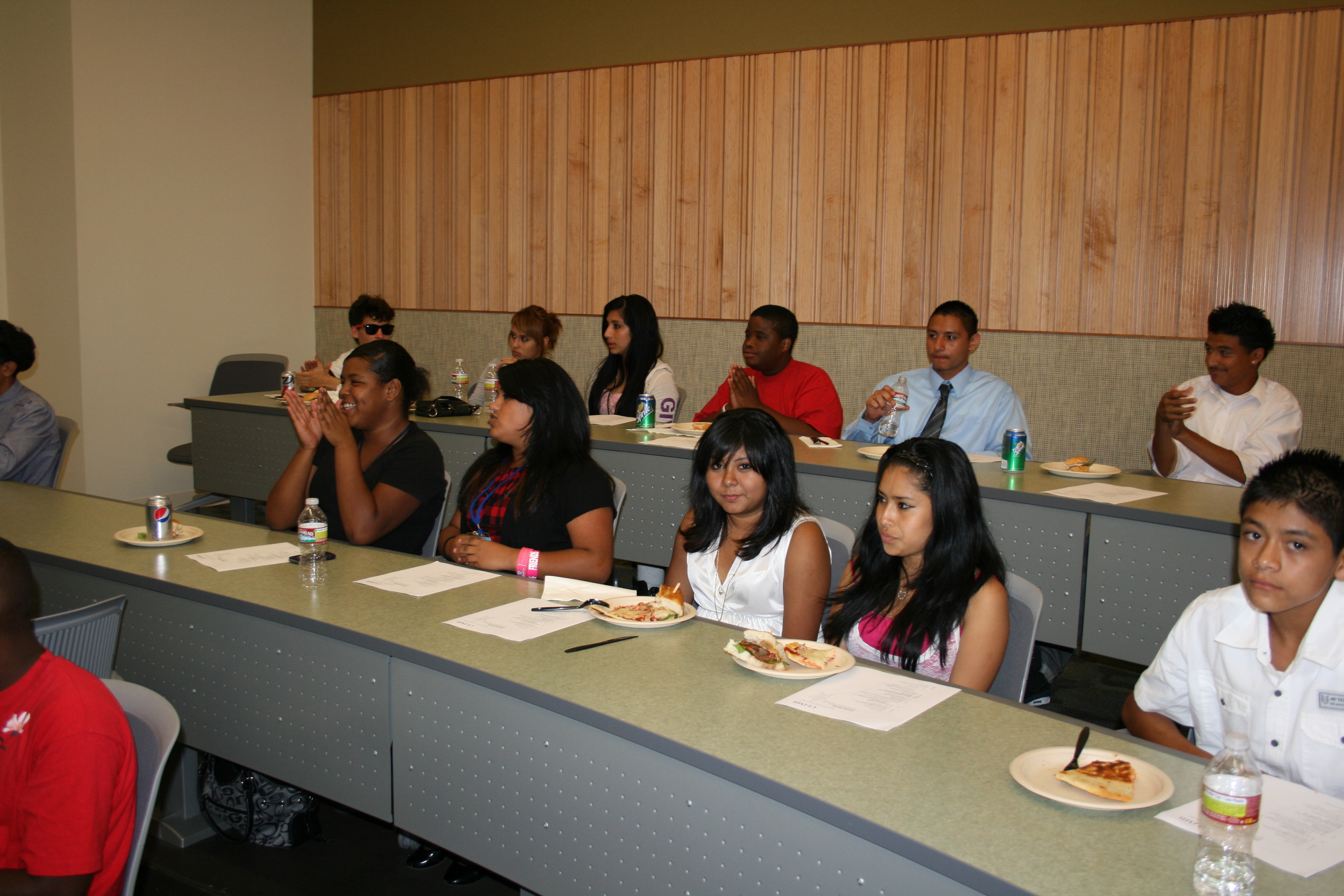 CLIMB is the Crawford Legal Institute & Mentorship Bond Program, created by TJSL professors Maurice Dyson and Bill Slomanson for the Crawford High School Legal Academy. CLIMB helps to develop the students’ critical thinking skills and expose them to the legal profession. The Crawford students came to the law school as well to meet the TJSL students, many of whom are signing up to work with the Crawford kids. There are quite a few opportunities for TJSL students with the program, including marketing and programming positions as well as participating in the teen court.