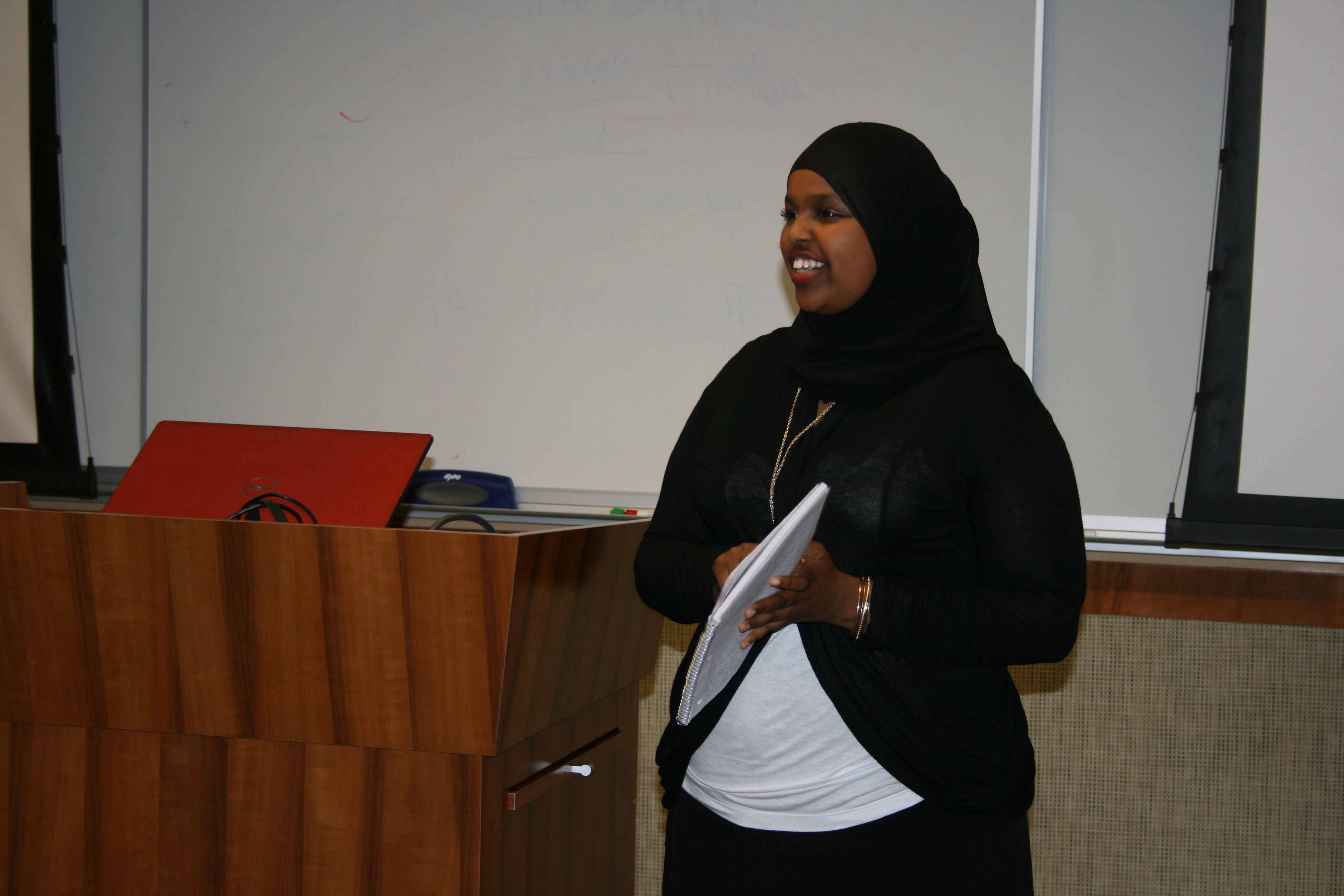 Ruweda Ali, a 16 year-old sophomore at Crawford High School spoke at the meeting, expressing her gratitude for CLIMB program: