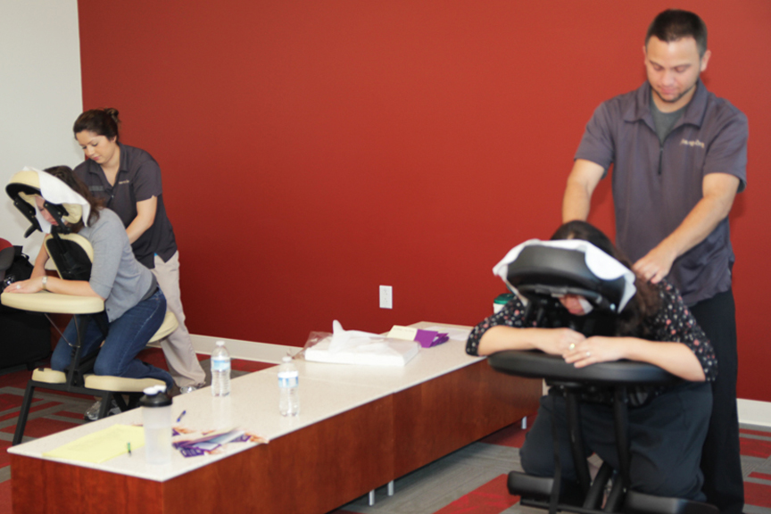 Kasey Paquette didn’t expect a free, relaxing massage when she came to law school and got ready to take her mid-term exams. But that’s what she and other TJSL students got on March 1 at “Mid-Term Breakaway,” sponsored by Student Services.“