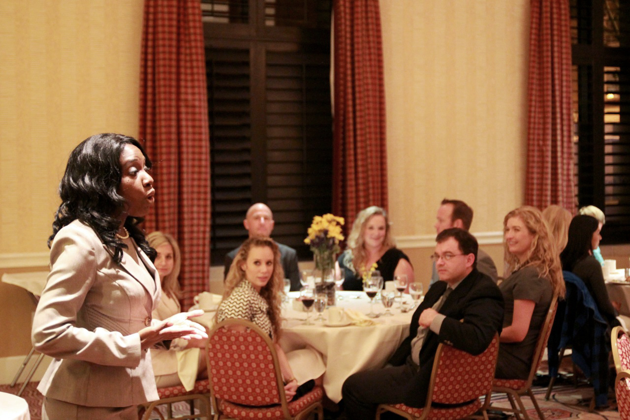 The “Etiquette Lady” was in town last Thursday night to bestow some class upon the members of Phi Alpha Delta. Elaine Swann is an Etiquette and Lifestyle Expert who through her book series “Girls Have Style”, her regular appearances on San Diego’s NBC “News in the Morning”, her radio program “The Elaine Show” on am 1000 KCEO, her website and syndicated column, shares up-to-the minute, practical, contemporary etiquette advice and tips. Basically, Elaine is a fancy superhero taking on bad manners one person at a time.