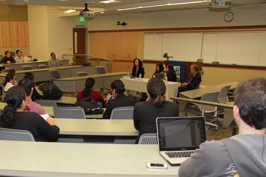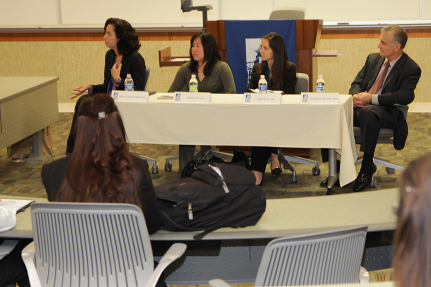 On April 12, the Immigration Law Society, along with the American Immigration Lawyers Association (AILA), held a career panel. The panelists included Diana Velos Coker, Esq., Tammy Lin, Esq., Nikki Weil, Esq., and TJSL Adjunct Professor Samuel W. Bettwy, Esq. They shared their experiences in private, non-profit and solo practice of Immigration law.