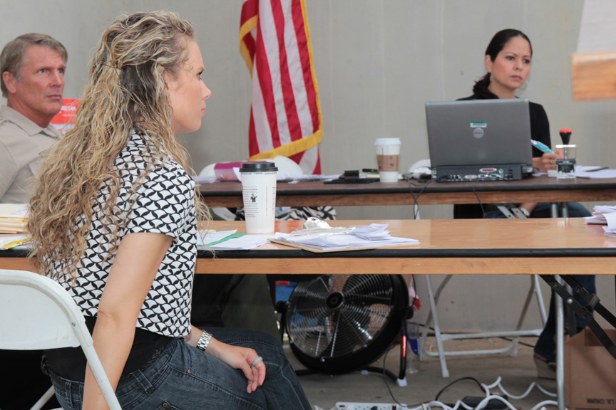 “As long as you have a robe, you’re all set no matter where you are,” said Superior Court Commissioner Kelly Doblado, who was holding court on a handball court at Stand Down 2012 on July 13.  “Have robe, will travel.”