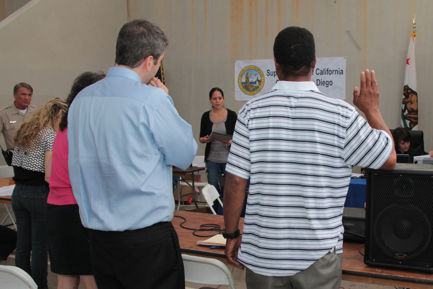 TJSL students who are part of the clinic the law school operates at VVSD were representing veterans before Commissioner Doblado, in family court at Stand Down to hear the cases of the vets who were asking for changes in their child support obligations.