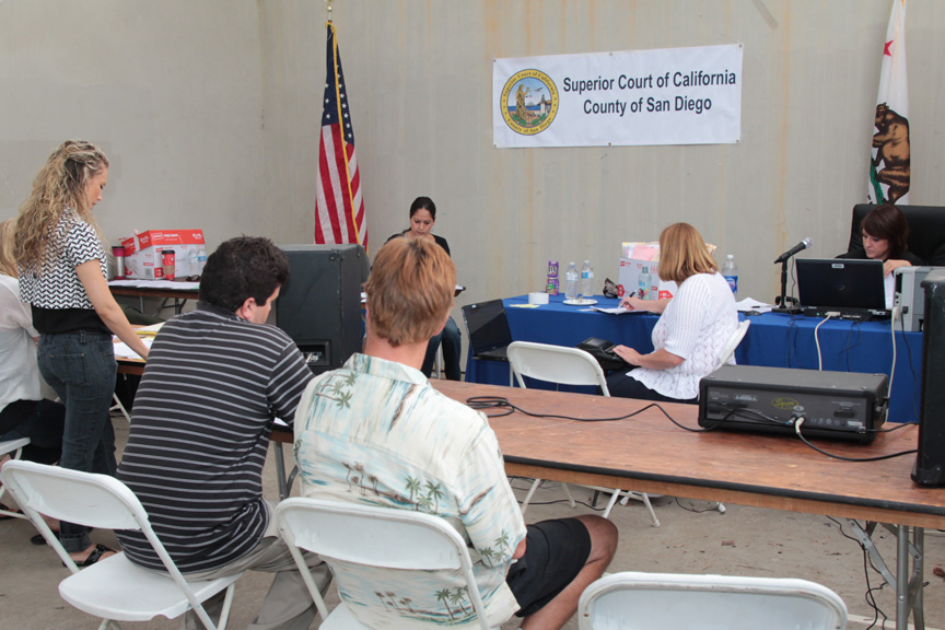 “This is a noble showing for TJSL, because the veterans have done so much for our country,” said Jessica Barber 3L, who is working for the County Department of Child Support services and appeared in the Stand Down court.  “Although it feels a little weird to be here in jeans and flip-flops.”
