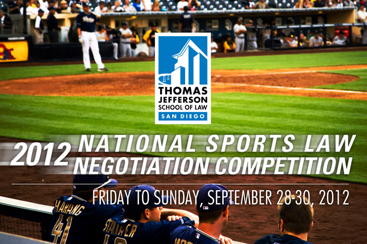 Excitement is building for the 2012 National Sports Law Negotiation Competition and Sports Law Symposium that will be held at Thomas Jefferson School of Law the weekend of September 28 – 30. This marks the second year of this prestigious competition that features teams from top law schools across the nation.