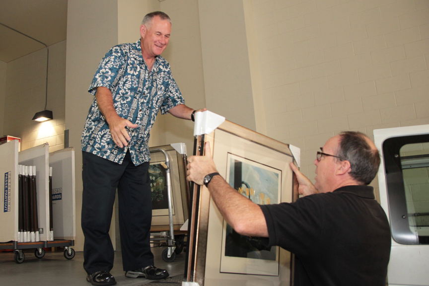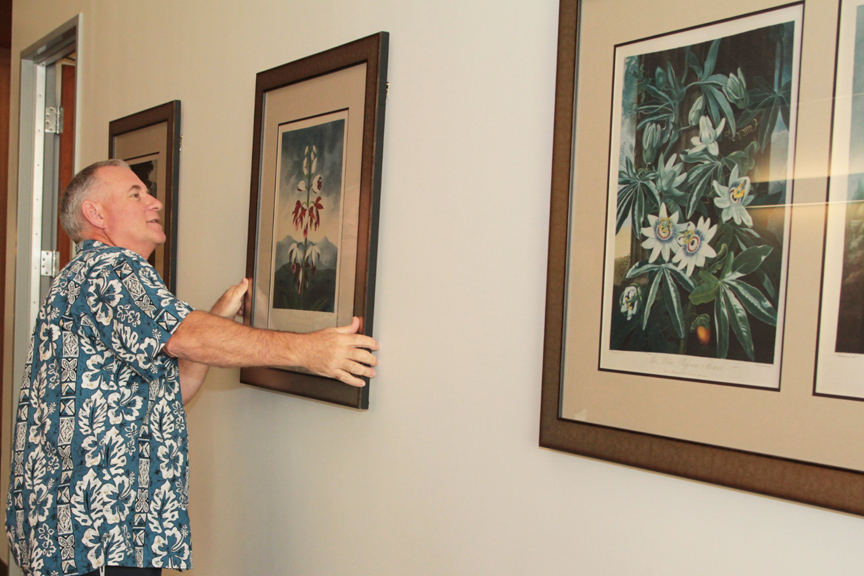 Facilities Director Dennis Sable Hangs a Print