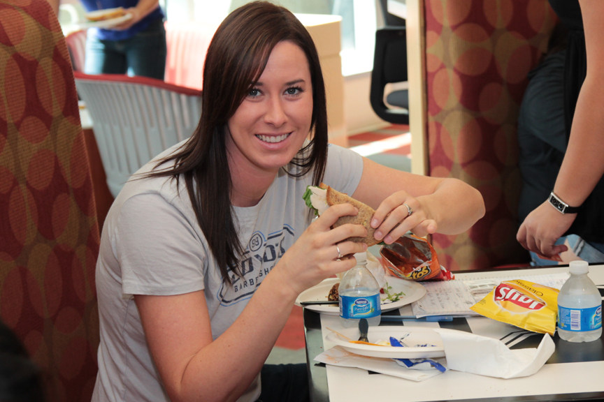 The students all lined up for complimentary sandwiches and drinks in the fifth floor Student Lounge and, at one point, the line was out the door.