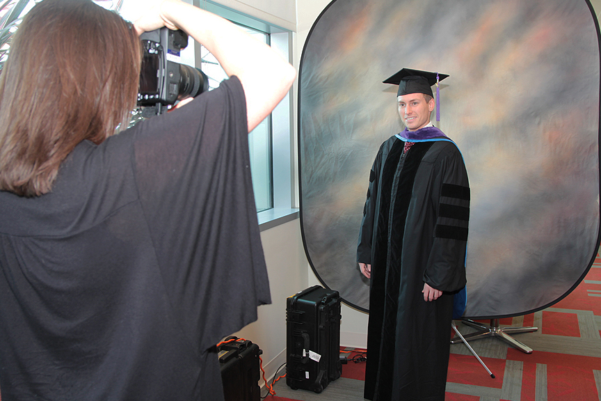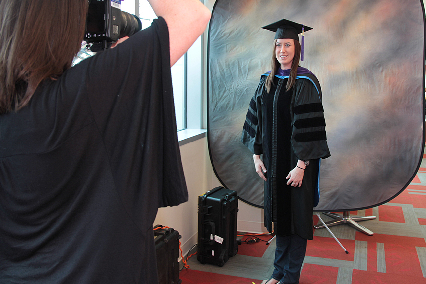 But for some December graduates it was unreal at the same time, like for Kristen Capps 3L. “It’s really weird,” she said as she put on a cap and gown for her photo. “It doesn’t seem real yet.”