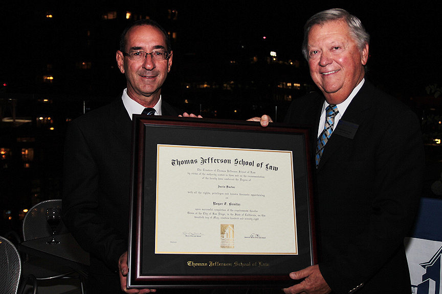 One of those successful graduates is Federal District Judge Roger Benitez ’78, who was honored by Dean Hasl and presented with a framed Thomas Jefferson School of Law diploma, since the law school was Western State College of Law in 1978.