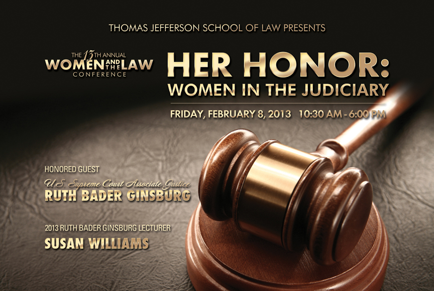 Thomas Jefferson School of Law is proud to welcome honored guest U.S. Supreme Court Associate Justice Ruth Bader Ginsburg to its 13th annual Women and the Law Conference on Friday, February 8, 2013.