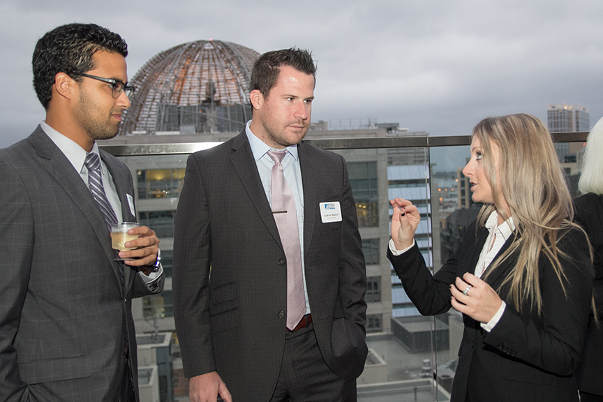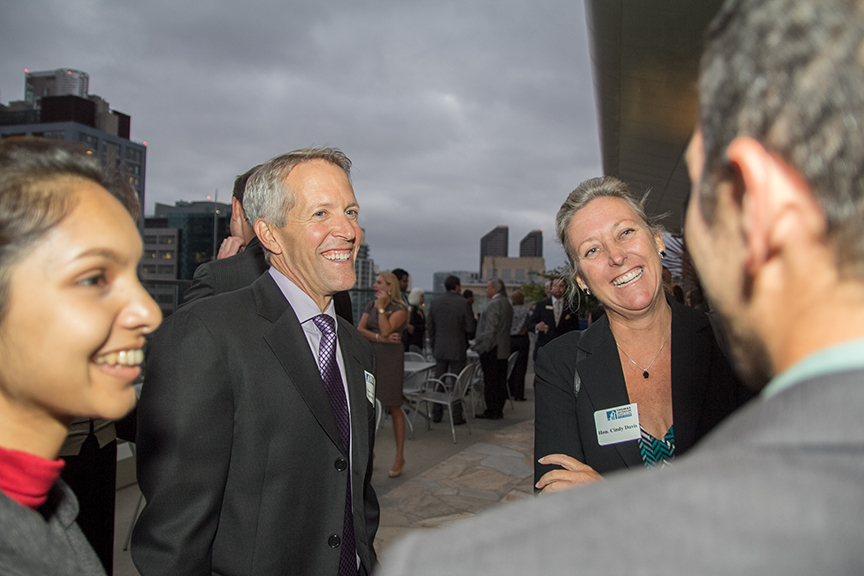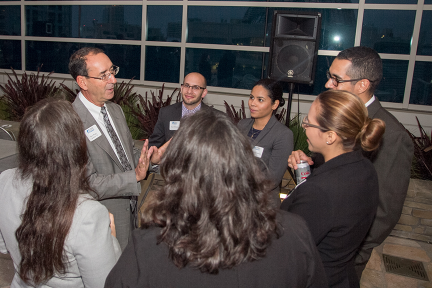 Alonso Zavalasoto (3L) is one of those ‘quality students’ that Commissioner Bloch was referring to, and he proved that by making the most of this unique experience. “I had a great time at the mixer,” said Zavalasoto. “It was an amazing opportunity to talk to local judges in a social setting.” Zavalasoto said he enjoyed meeting Judge Browder Willis ’83 in this relaxed atmosphere because he has appeared before the judge and argued several motions in his Court while serving as an intern at the Office of the Public Defender. “Judge Willis stood out to me because of the way he counsels kids that are before him," explained Zavalasoto. "One of my most memorable times in his courtroom was when he cited the poem 'I am Somebody' to an African American kid in order to motivate him and provide some comfort. Juvenile Court is emotionally draining, but Judge Willis always had words of wisdom that eased the kids' anxieties.” The mixer that brought together eight Judges and one Commissioner was held on the eighth-floor outdoor terrace of TJSL’s downtown San Diego campus.