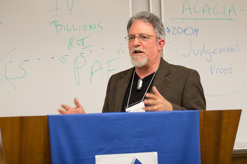 The attorney representing singer Robin Thicke in a preemptory lawsuit related to Thicke's "Blurred Lines" hit song joined three other prominent patent and copyright law attorneys to focus on the new phenomena known as "patent trolls" at a forum at Thomas Jefferson School of Law on Friday, October 18. "From Patents to Porn: The #Blurred Lines Between Intellectual Property #Trolls and Legitimate Intellectual Property Enforcement" was presented by TJSL, in association with the law school's Entertainment Law Society, the Center for Law and Intellectual Property and the Intellectual Property Law Association.