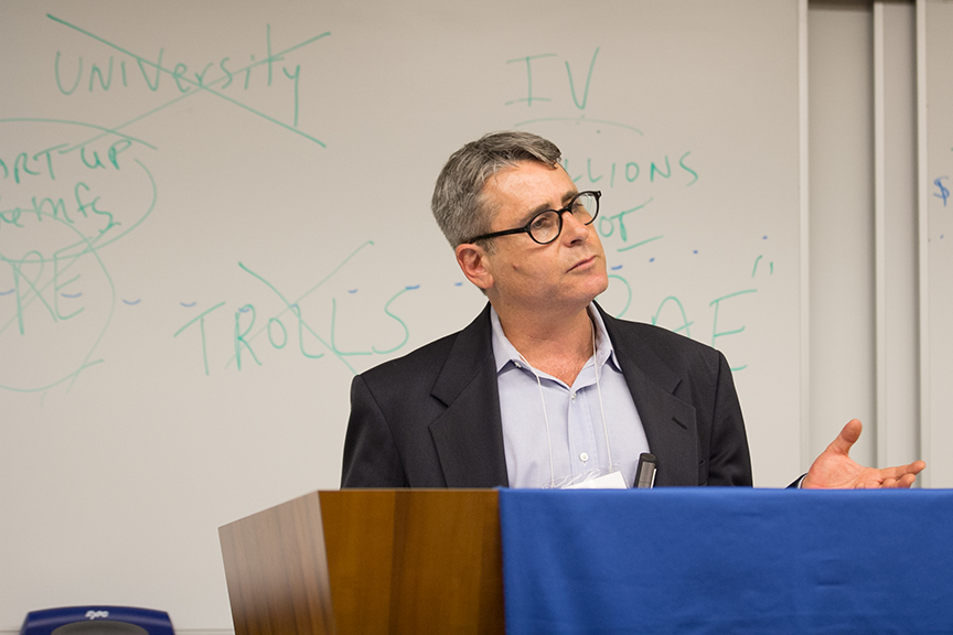 In the patent world, a troll is an entity that obtains patents for inventions it never intends to market. The forum, featuring four highly accomplished patent and copyright lawyers, explored the phenomena of IP trolls, from the world of technological inventions under patent law, to pornography and musical works under copyright law."