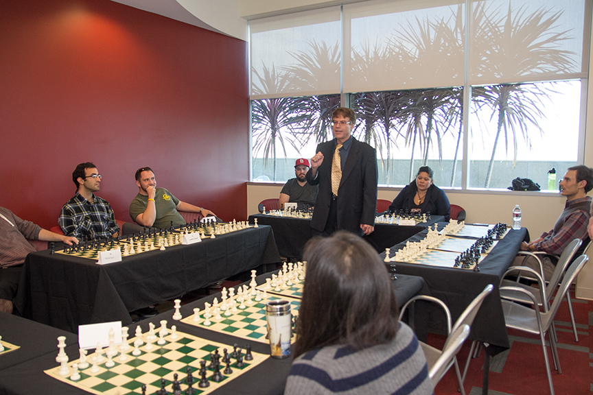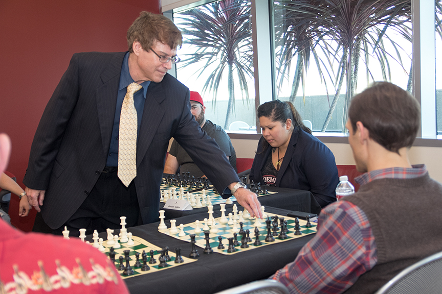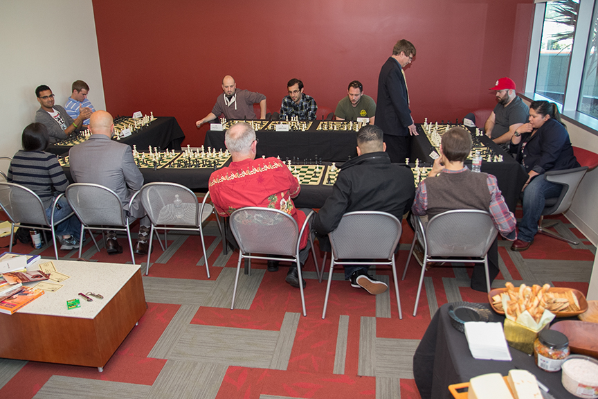 But ironically, Salas was one of the last three players left out of the 12 who played in the first session from 3–5 p.m. against chess master Professor Saccuzzo on Thursday, October 24. Thursday marked the third time Professor Saccuzzo volunteered to simultaneously play chess against TJSL competitors.