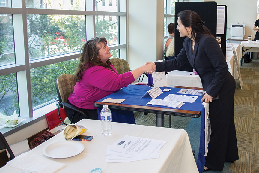 The organizations conducted interviews with current students who are looking for jobs and who are interested in intern and externships. “I love the fact that TJSL has a public interest - focused career fair,” said staff attorney with the Legal Aid Society of San Diego's Pro Bono Program Lorena Slomanson ’03. “This provides students with a more comprehensive understanding of the public interest opportunities available to them in San Diego. I especially love going back to the school each year for this event, and seeing the interest grow bigger every year. I imagine this interest has grown, in part, due to TJSL's various thriving clinical programs, where students can begin to know, or expand their knowledge of public interest law.”