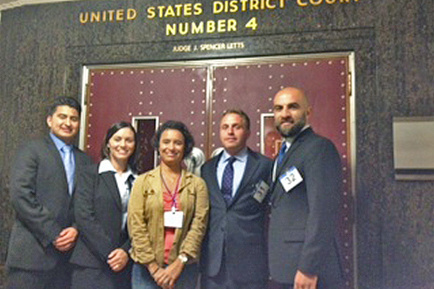 TJSL sent two teams comprising eight TJSL students: Charles Lollar (3L), Javier Vargas (3L), Michael Klitzke (3L), Jessica McCracken (2L), Raffy Krikorian (3L), Brad Sorrentino (3L), Ismael Iniguez (3L), and Kierre Coghill (2L). Coached by adjunct Professors Lea Fields-Bernard and Lilys McCoy, the team spent long hours mastering a challenging fact pattern involving a claim of wrongful termination under the Americans with Disabilities Act. The team was greatly aided in its preparation by Professor Susan Bisom-Rapp and Professor Rebecca Lee, both employment law scholars.
