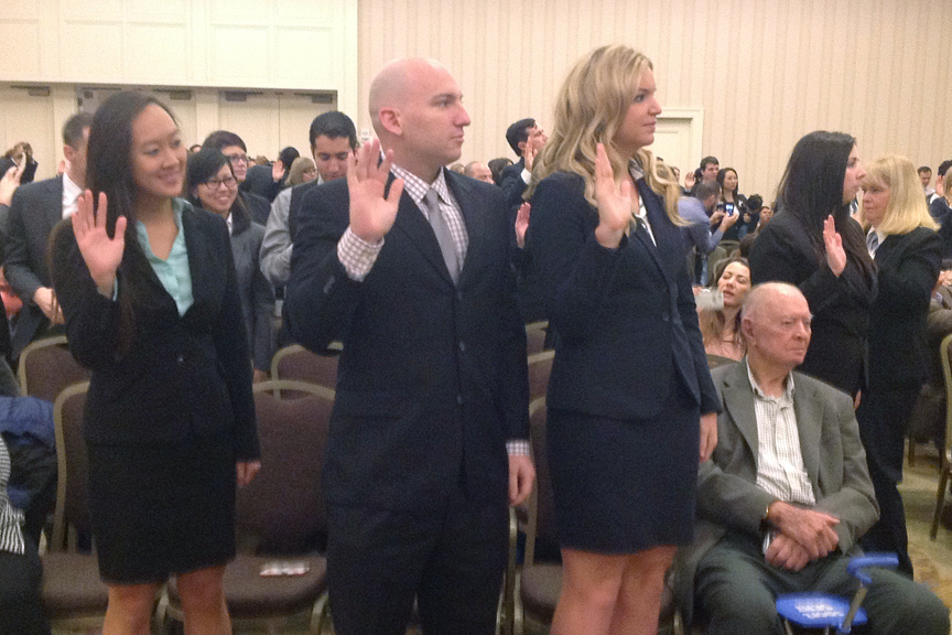 “Another reason this day is so great is because I got to stand next to and be sworn-in with my fiancée, Kenny Robbins ‘13 and one of my best friends Elizabeth Chu ‘13,” said Demery. “It’s kind of like a full circle because we all started together.”