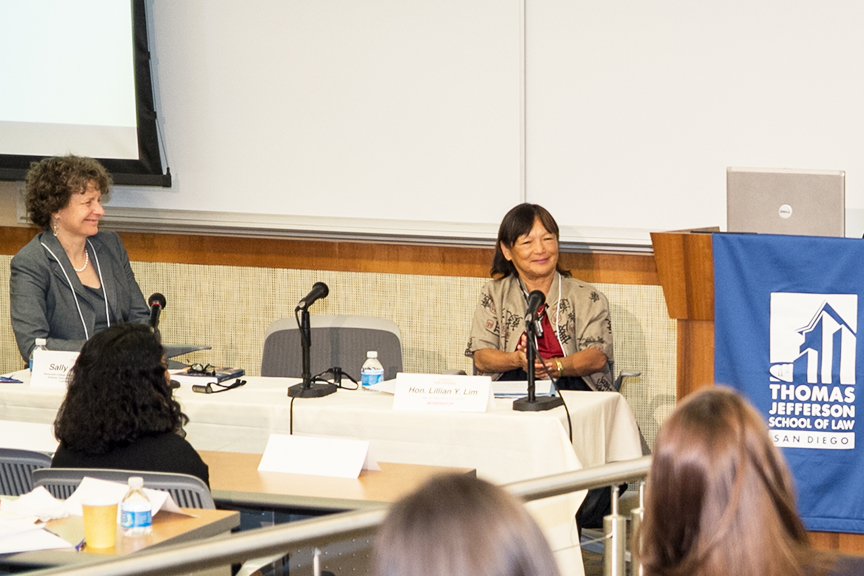 The second discussion panel was Domestic Perspectives on women and the judiciary, moderated by TJSL alumna and retired Superior Court Judge Lillian Lim ‘77, that featured Professor Sally Kenney of the Newcomb College Institute of Tulane University; Justice Laurie Zelon of the California Court of Appeal, Second District and Professor Carla D. Pratt of the Dickinson School of Law at Penn State University.