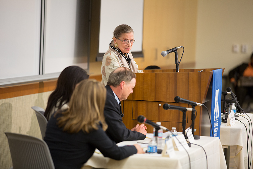 Justice Ginsburg answered questions from a panel consisting of Professors Kenneth Vandevelde and Rebecca Lee, along with third-year student Jennifer McCollough.