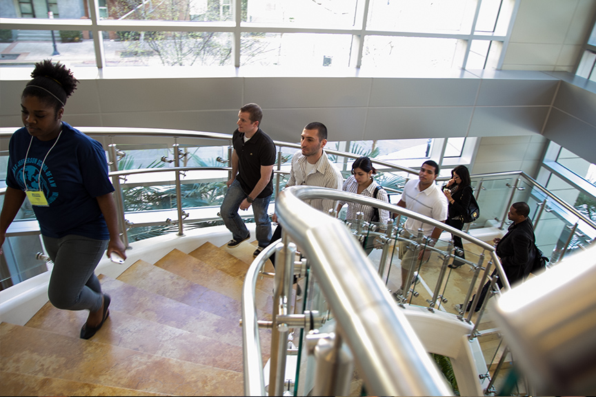 “I love the campus,” Valenzuela said after a tour led by TJSL student Yinka Glover 3L. “I especially love the library.”