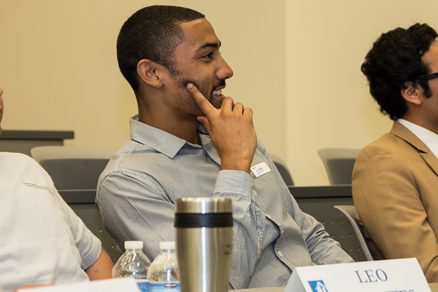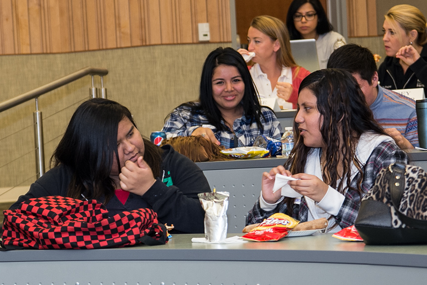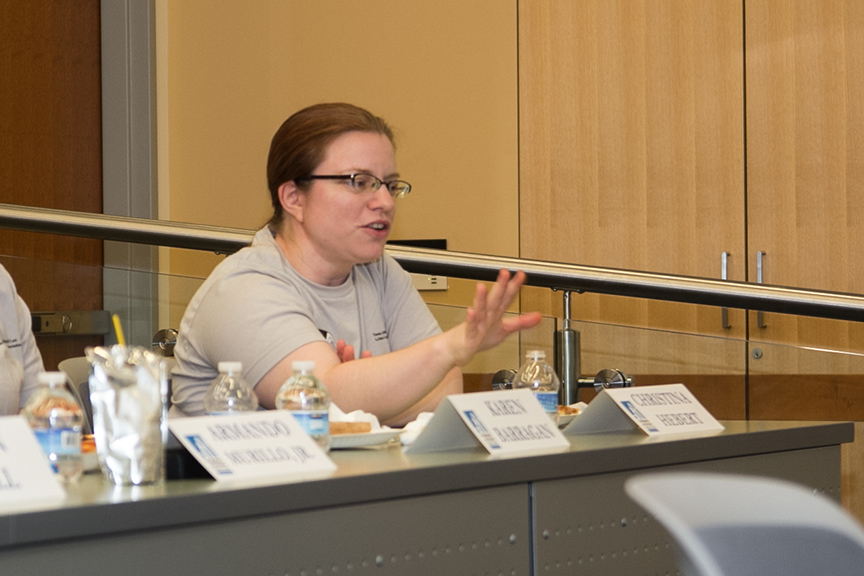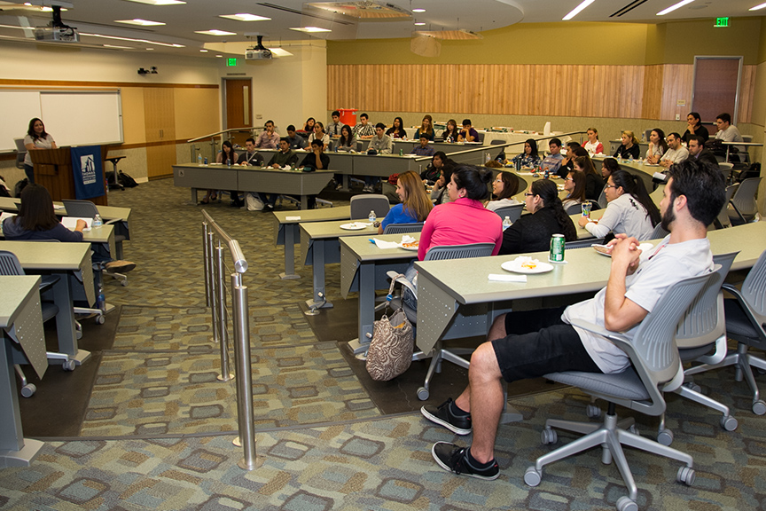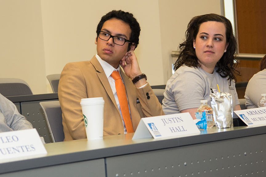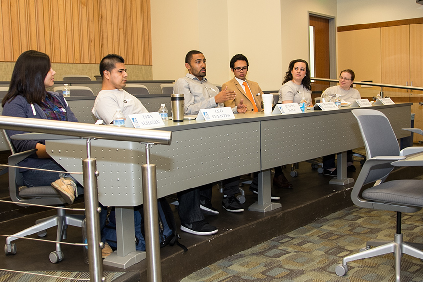 During the lunch hour, students attentively listened to the inspirational educational journeys of panelists Tara Almazan 2L, Leo Fuentes 1L, Justin Hall 2L, Armando Murillo Jr. 1L, Karen Barragan 2L and Christina Hebert 1L.