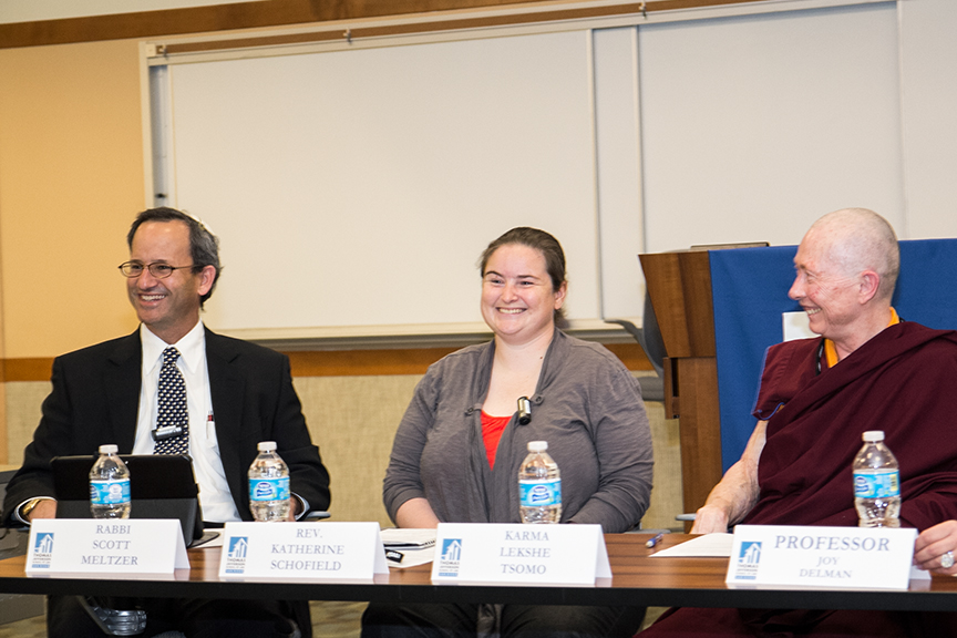 The guest speakers were from three different ideological backgrounds; Rabbi Scott Meltzer, a Lecturer on Religious Studies at San Diego State University; Reverend Katherine Schofield, who is the director of Spirituality and Sexuality at the University of Southern California; and Karma Lekshe Tsomo, Associate Professor in the Department of Theology & Religious Studies at the University of San Diego, who teaches Buddhist Faith and Practice.
