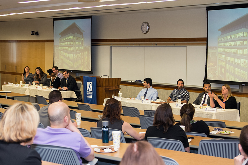 The nine TJSL alumni who are part of the incubator program – the “new solos” - talked about their experiences at the center and answered questions posed by the students, faculty and staff that came to the event.