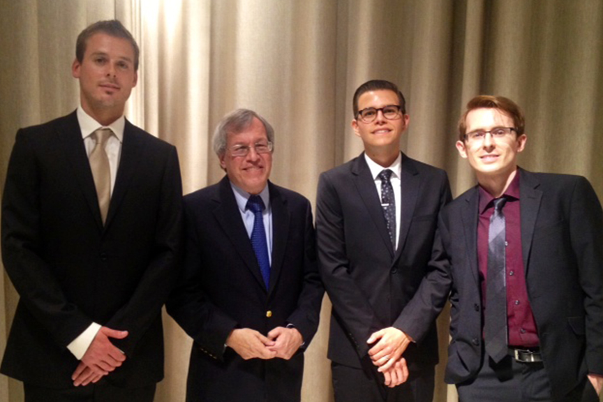 All Thomas Jefferson Law Review members work hard to make the Journal the great scholarly work that it is. The banquet was a well-deserved break for all. Pictured in First Photo: L to R: 2012-2013 Law Review Managing Editor Greyson Goody (3L), UC Irvine Law School Dean Erwin Chemerinsky, Law Review Executive Editor Travis Davis (3L), 2012-2013 Law Review Editor-in-Chief Walter Araujo (3L)