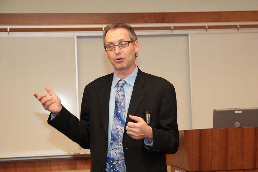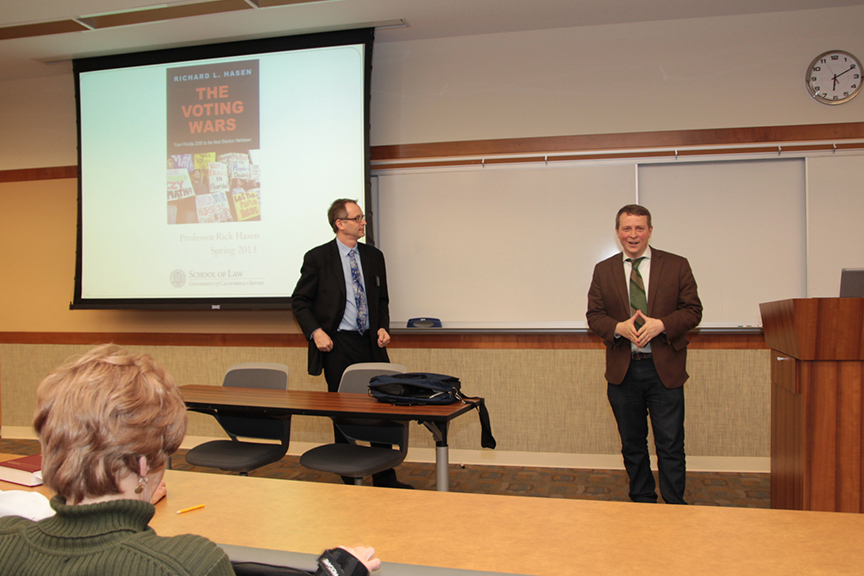 Richard Hasen, Chancellor's Professor of Law and Political Science at UC Irvine School of Law, discussed his recent book, The Voting Wars in a special presentation April 15 at TJSL. Professor Hasen's presentation covered a range of voting controversies, from the contested votes in Florida during the 2000 election to recent debates over voter identification laws. Hasen challenged liberals and conservatives alike, noting that there is little evidence of voter impersonation fraud that would warrant identification laws. At the same time, Hasen argued, concerns that voter identification laws may suppress turnout may be overstated.