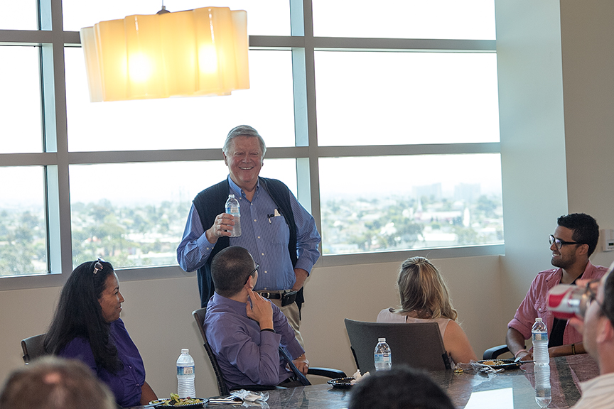 He also had a big announcement to make: the negotiations have just been completed for the lease on TJSL’s new café, which will be located just off the main lobby. The Dean said the company running the café is called Catering by Giuseppe and will feature food stations as well as a full-service restaurant with indoor and outdoor seating.