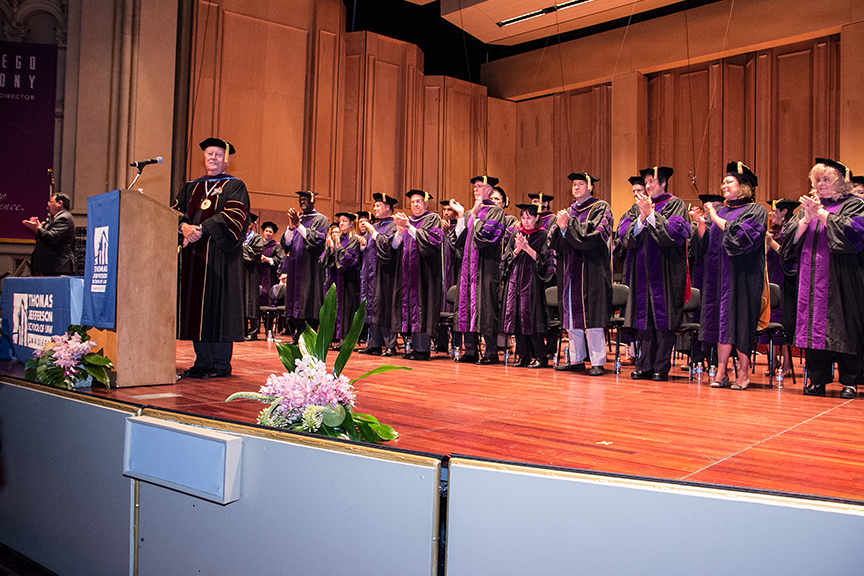 After a heartfelt and sincere thank you to his family for the “sacrifices they all made to make possible my career,” the Dean said, “Thank you and Godspeed. I am proud to join you today as a graduate of Thomas Jefferson School of Law.”