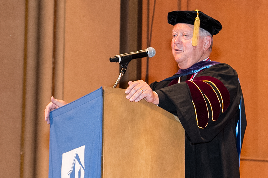Then Dean Hasl welcomed the 210 juris doctor graduates to what he called a “noble and learned profession.” He asked the graduates to “find your opportunity for service and leadership while fervently practicing justice and compassion in a world that so desperately needs your services.”