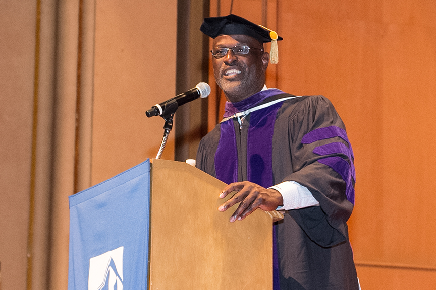 Dean Hasl received an honorary degree from Thomas Jefferson School of Law and was also given the honor of delivering the commencement address for, as Board of Trustees Chairman Randy Jones put it, “his immense contribution to the law school.”