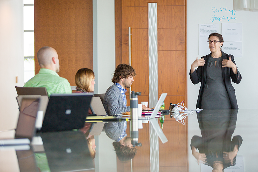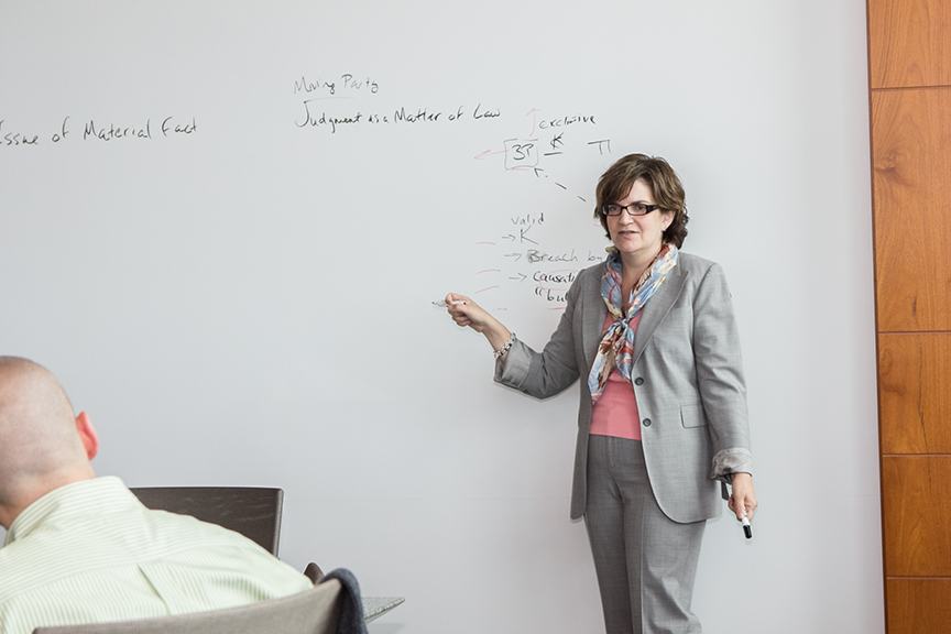 “We were hoping that in this very concentrated setting students would not only get a feel for the different fields that are employed in practice, but also that they would get a sense of what it was like to figure things out on their own,” said TJSL faculty member Professor Julie Cromer Young a “partner” in the Thomas & Jefferson mock firm. She who co-designed the Practicum with Adjunct Professor Eric Lane and Professor Steve Semeraro.