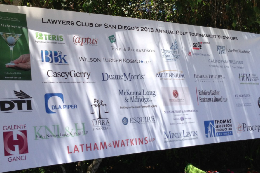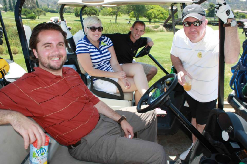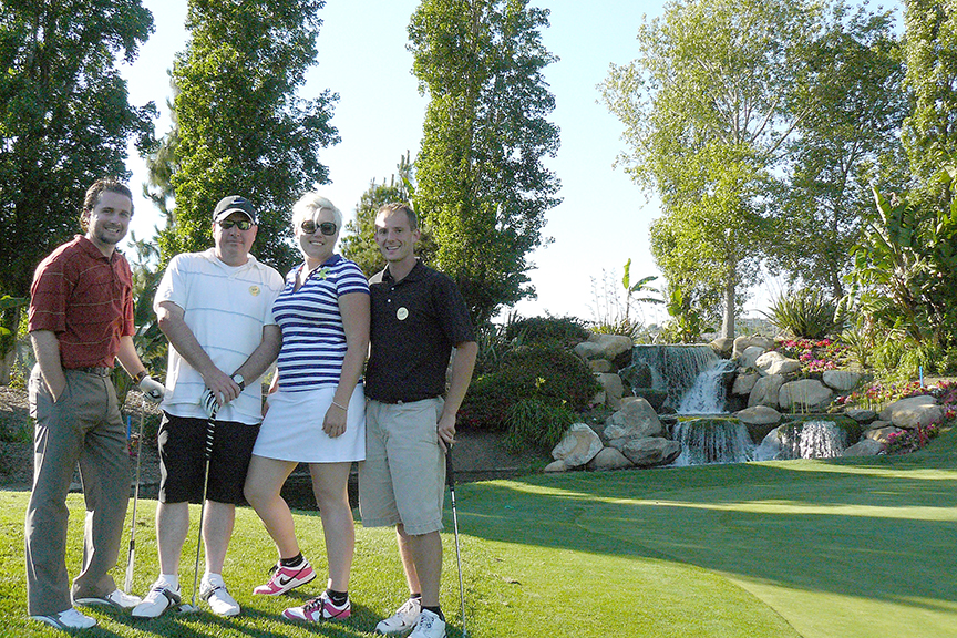 Jeremy Evans ’11, David Beavens ‘08, Lacy J Lodes ‘08 and Brett Goda ‘11 comprised TJSL’s sponsored foursome at the Lawyers Club of San Diego 2013 Annual Golf Tournament at Riverwalk Golf Club on Friday, June 28. They joined other TJSL alumni golfers at the tournament, including Renee Galente ’08 and Eric Ganci ’08. Even though he didn’t hit a hole-in-one to win $10,000 or a 36-month lease on a BMW, Evans summed up the event as a “wonderful tournament.”
