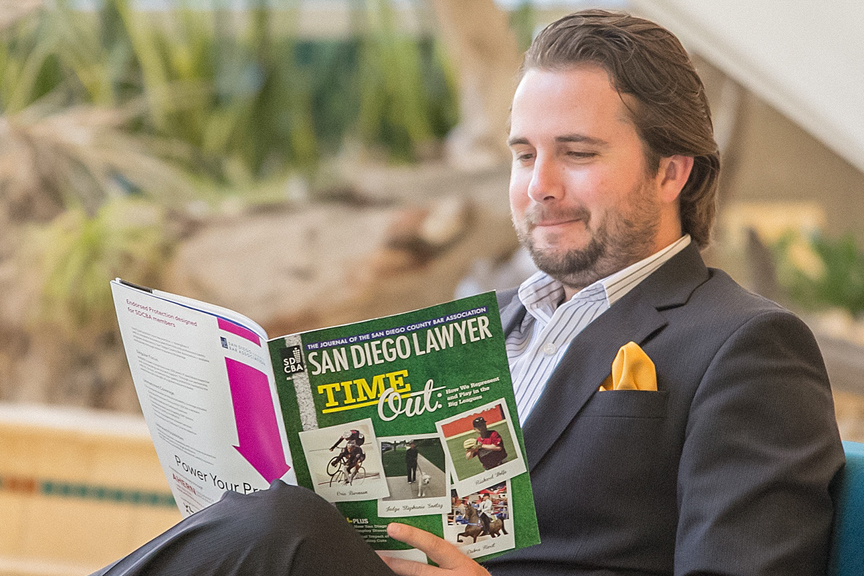 Alumnus Jeremy Evans ’11, who is on the editorial staff of the Journal, has the cover story, titled “Time OUT – How We Represent and Play in the Big Leagues.” The article briefly profiles how some San Diego attorneys are involved with sports representation, including Randy Grossman ’94, who represents well known sports figures like Hall of Famer Dave Winfield. The article also describes how some local attorneys participate in sports, including Eric Bernsen ’12, who competes in long-distance bicycling, and Diane Letarte ‘96, who loves to ride motorcycles. (TJSL Trivia – Did you know that the law school once had an ice hockey team on which former California State Bar President Marc Adelman ’77 and San Diego Lawyer Editor Martin Kruming ’77 both played?)