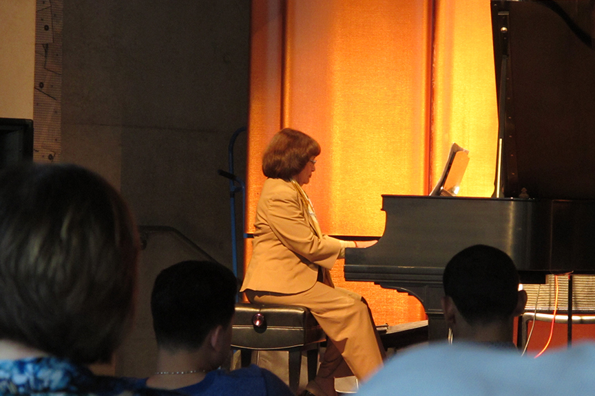Professors Richard Winchester and Susan Tiefenbrun played classical piano pieces on the theater’s vintage Steinway piano from the 1920s. Director of Facilities Dennis Sable performed a guitar / song solo.