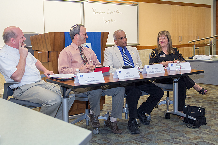 The third annual Reproductive Rights and Religion talk was held by TJSL’s Law Students for Reproductive Justice on Wednesday, April 9th. A three person panel composed of Rabbi Scott Meltzer, Professor Khaleel Mohammed, and Pastor Darin Johnson expressed the views of Judaism, Islam, and Christianity, respectively, on topics within the area of reproductive freedom and how each faith tradition interacts with the exercise of such rights. Professor Joy Delman, LSRJ’s faculty advisor, served as the discussion moderator. Professor Delman asked questions regarding a variety of topics including the intersection of religious texts and legal policy making, the potential effects of the pending Hobby Lobby decision, and how each faith deals with the question of abortion, contraception, and assisted reproduction.