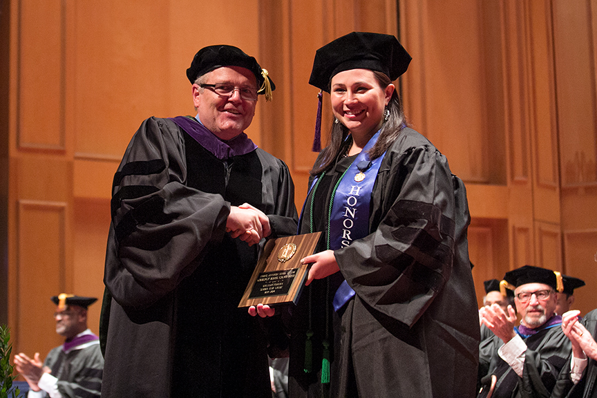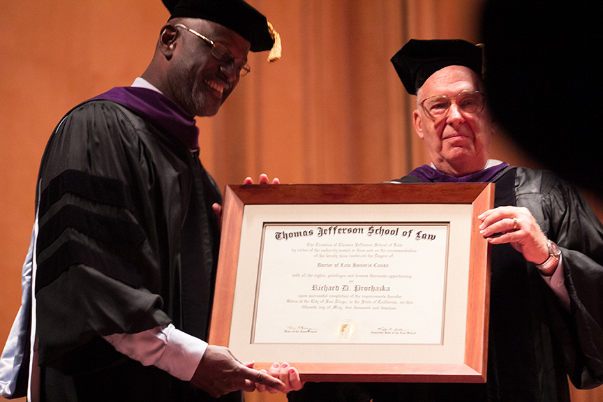 Randy K. Jones awarding Honorary Degree to Former Board of Trustees member Richard D. Prochazka