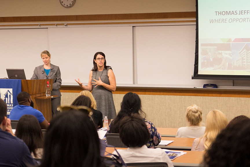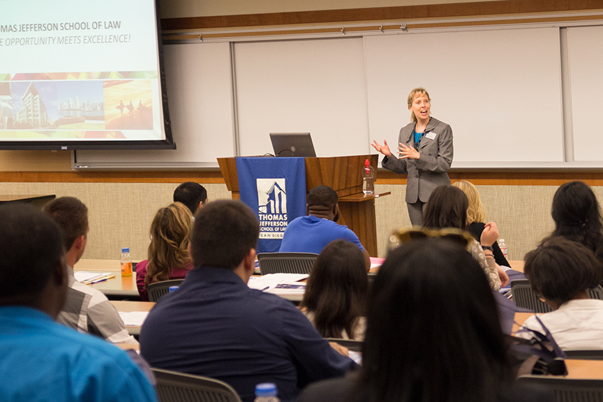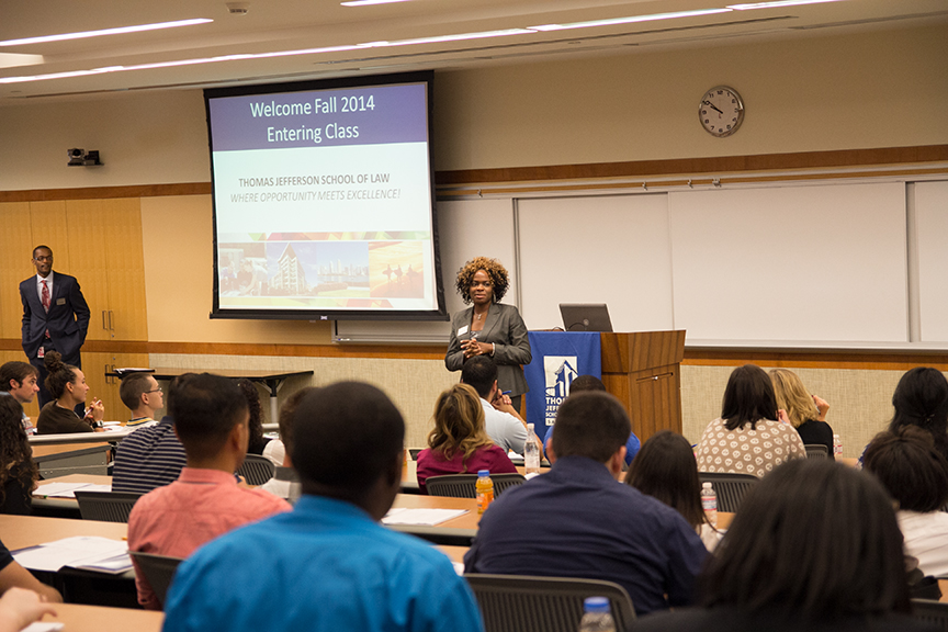 Associate Director of Admissions Michelle Allison-Slaughter explained to the incoming class that during Week One, they will participate in sessions to learn strategies for approaching their doctrinal coursework. “The sessions are led by TJSL professors who are knowledgeable about what it takes to succeed in law school,” said Allison-Slaughter. “We understand that transitioning into law school is never easy but we try to give you as much information as possible.”