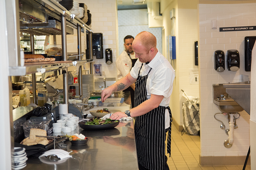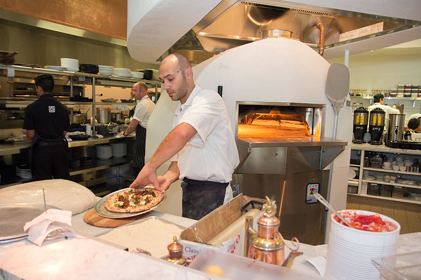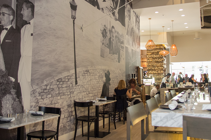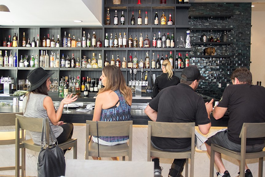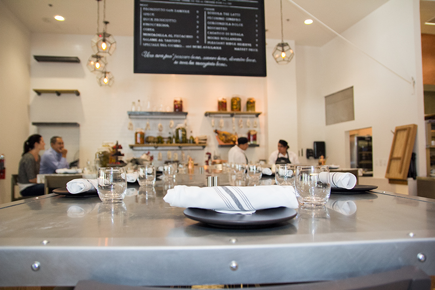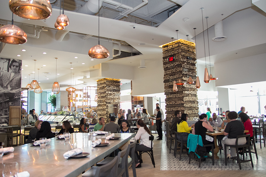 Bottega Americano’s footprint includes 8,000 square feet of indoor and outdoor space featuring a modern design with retro Italian and European influences. Bottega Americano leans more toward being a full-service restaurant with five interactive food bars as well as made-to-order meals that can be picked up from the gourmet-to-go market. Guests can sit at any of the culinary bars to watch food being prepared and interact with the chefs, or in the communal dining room or outside patio. Valet parking is available every night starting at 5 p.m. for $7.