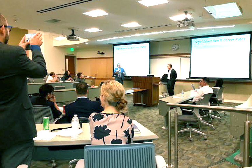 Turkish prosecutors and judges visiting San Diego lawyers and judges took time out of their busy program to speak to TJSL students on September 22, 2014, at an event sponsored by the Criminal Expungement and Reentry Society, the Criminal Law Society, and the International Law Society.